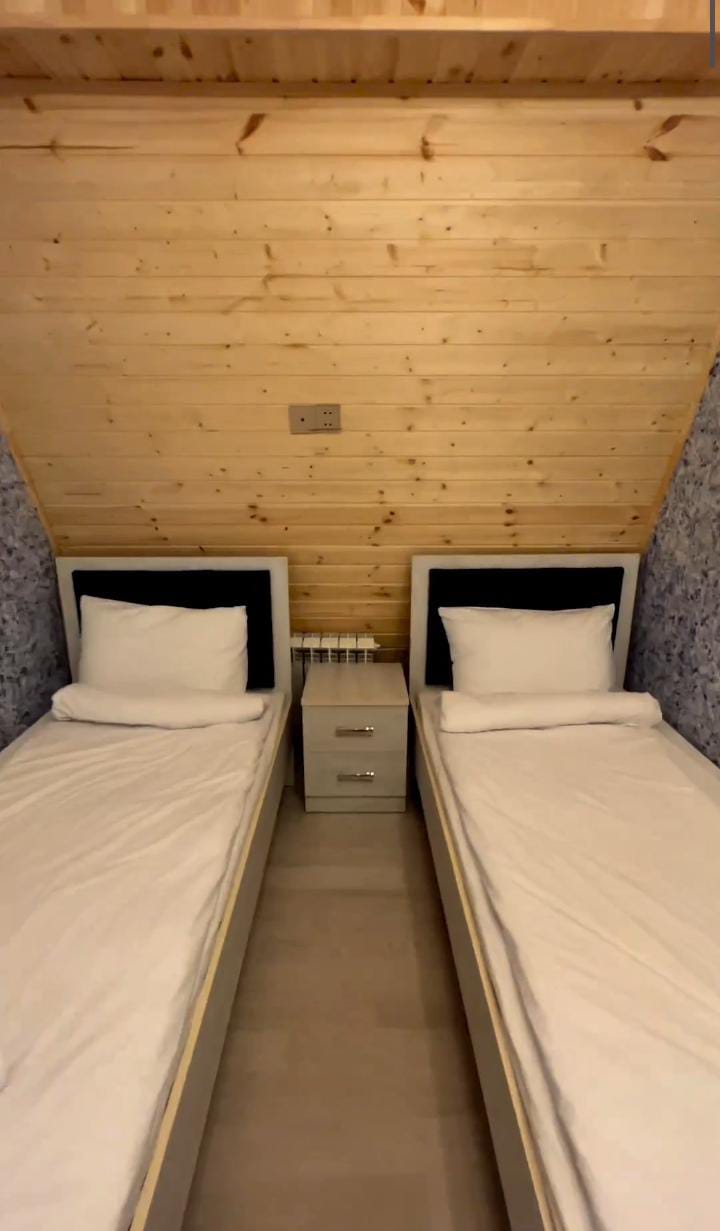 Deluxe house A frame vaillalar, həyətdə böyük hovuz, 3 sanuzeldən və 5 yataqdan ibarətdir. Qəbələnd və Tufandağ oteli yaxınlığında yerləşir.